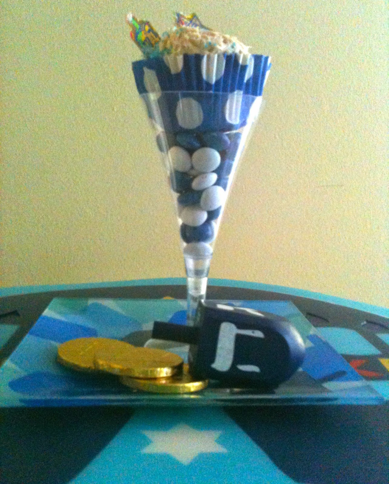 I filled the flute with blue and white M&Ms. Stores like It'Sugar and Party Stores carry a huge selection of colors.