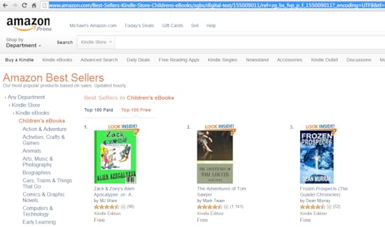 Zack & Zoey's Alien Apocalypse into the top 15 of the Amazon store and the #1 position in the children's section! In case you are wondering, that took almost 10,000 downloads. Of course these are free downloads, but I am already seeing a big bump in sales for book two:
