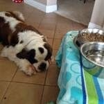 4. We rescued a six year old Saint Bernard in January. Ninja is giant and a little quirky. He will protect his food from robins and bullfrogs by barking like crazy, but he had no reaction to a rattlesnake in the living room- as long as it stayed away from his bowl, he was cool. I, on the other hand, screamed and flailed and generally panicked until the snake wrangler arrived and took the snake away. The snake retreated to a corner and from what I can tell, napped.