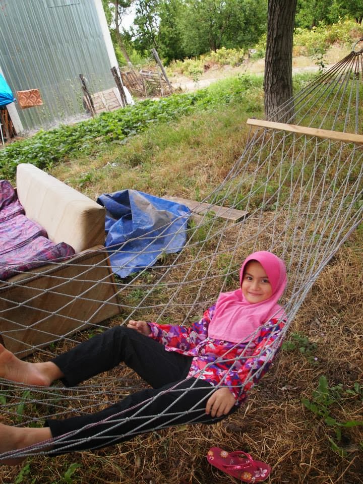 Tengoklah Qaisara sempat lagi berbaring dihammock pak cik dan mak cik itu!