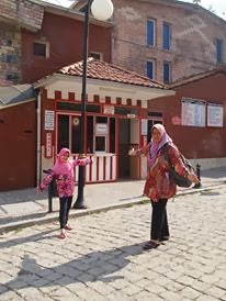 Qaisara bergambar sebelum pulang di luar kawasan hamam.
