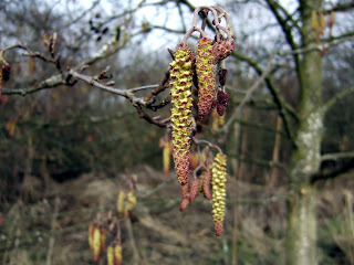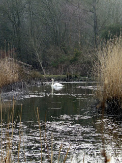I walked round the lake, and a little along the path by the river, where, because of the recent flooding, the snowdrops were poking up through sand rather than the more normal soil, and there was driftwood and detritus all over the place. A fair number of trees have been cut back to open up vistas and let in more light and the catkins were starting, as well as the first, bright green leaves. There was even some blossom in a sheltered spot.