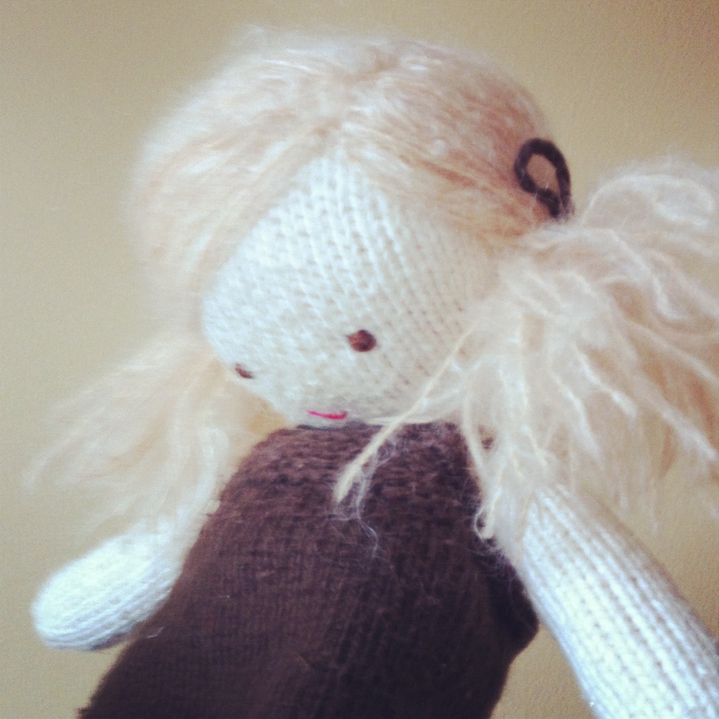 Yarn choice is important when considering signs of wear love.  I think wool ultimately holds up well.  But, unless a doll just sits on the shelf, even the best wool yarn will show signs of love over time.  My middle daughter sleeps next to her Rose Doll every night.  The top of the doll's head is a bit fuzzy now, but her ponytails look great, all things consdered.  I feel like I could "clean-up" Rose Doll's head a bit if I wanted.  Hmmm...I wonder if a sweater shaver would work?  But then again...why?  Toys are meant to be loved.