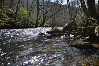 Keats dismissed his poem as doggerel; as he says, it's full of predictable rhyme and joyful bawdiness. But having just been to see the river as it slides gracefully through a wooded Dartmoor gorge, and seen it surrounded by the most exuberant display of wild daffodils, with dappled sunlight sifting through the trees and the whispering sibilance of the river all soft and the air sweet with the edge of spring, I can't help feeling something like forgiveness for Keats's easy rhymes. Could his rosy vision of the revels of 'maidens sweet' have been an early depiction of the binge drinkers of his day? Anyway, does it matter, when we can be enraptured beside the riverbank where 'O and O/, the daisies blow and the primroses are waken'd/ and violets white /sit in silver plight..?