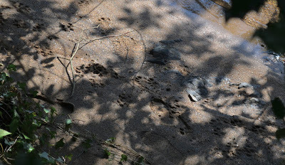 The poet Keats does not mention otters in his light-hearted doggerel dedicated to the river Teign (shown below as it looked today). Their absence from Keats's poem is not very surprising since in his day all otters were perceived as Vermin. Back then otters were thought simply to be fish-devouring pests. However, even though they did not appear very often in verse they were there, those secretive spirits of the river, even if they were not considered worth mentioning. And now attitudes have altered, persecution has mostly ceased, and toxic pollution is less of a problem, the otters are protected, and are returning again. Happily it is more fashionable to mention them. Yesterday I spent some time finding their many tracks and spraints in the sandy banks of the sprightly Teign: