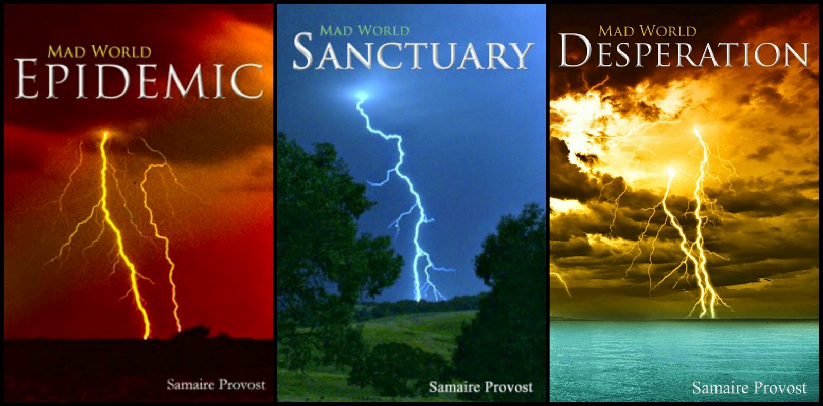 In July 2012, Samaire Provost published the first book in her zombie apocalypse trilogy, titled “Mad World: EPIDEMIC.” This was followed by “Mad World: SANCTUARY” in August 2012 and “Mad World: DESPERATION” in October 2013. Since then, thousands of readers have downloaded or purchased paperback copies of one or more volumes in this series, based on the original premise that the Black Plague from the Dark Ages has been reawakened in a Stanford laboratory and escaped, causing an epidemic that transformed huge segments of the population into zombies. A group of friends embark on a cross-country trip in an attempt to escape the zombies that turns into a fight to the death.