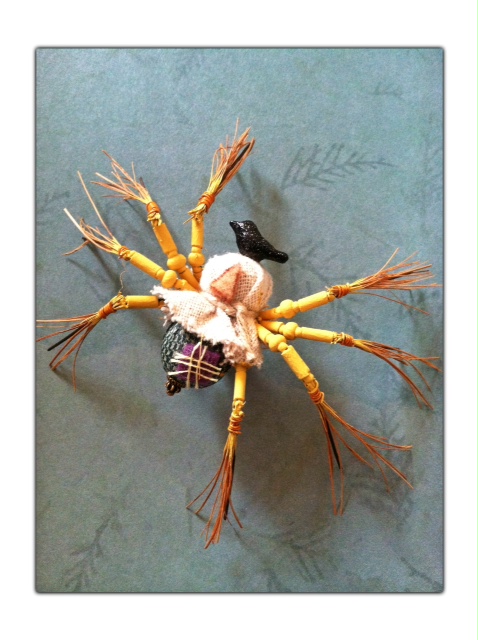 As I wind down my spider project with this second to last spider, I am excited to complete my Oz series with a lucky number 7, and on the weekend opening of Oz: The Great and Powerful . We love the scarecrow for his gentle wisdom and his attempt to find strength of mind and might in his most fearsome hour. His is Dorothy's first companion on the road to Oz, and he sees her to the very end of her journey. He stands for loyalty and friendship, so I saved the best for last.