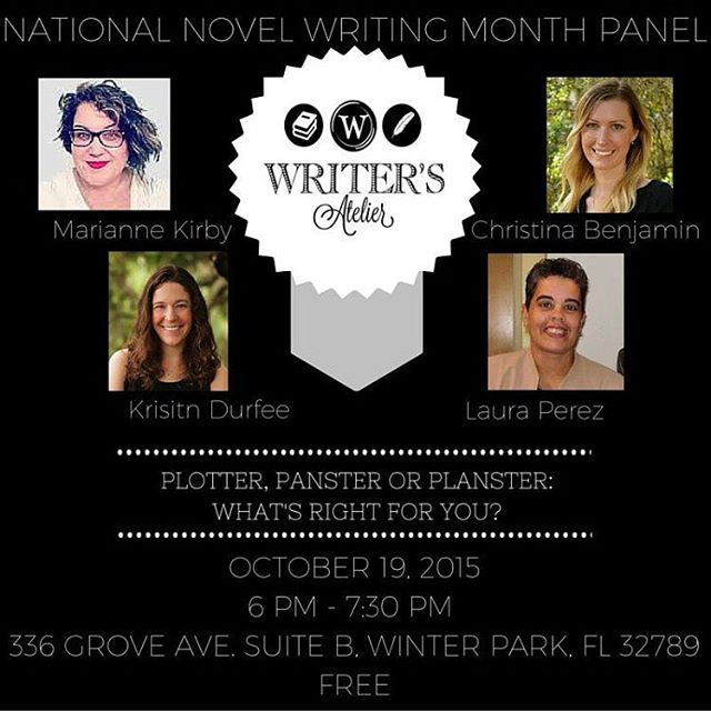 I've had the opportunity since my last post to conduct a writing seminar at the Orlando Central Library called Write that Novel and I've participated in a NaNoWriMo panel hosted by Writer's Atelier.