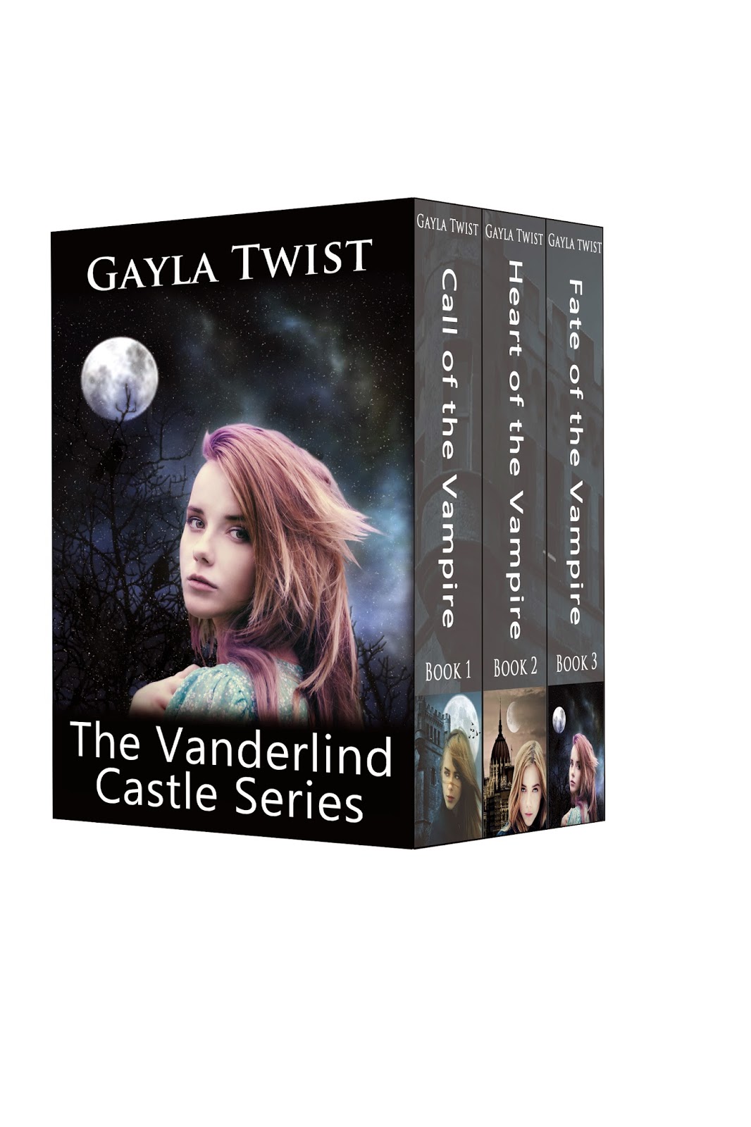 You read that right. Now you can get all three of the Vanderlind Castle Trilogy in a convenient e-boxed set. You get Call of the Vampire, Heart of the Vampire, and Fate of the Vampire all at once and you save a couple of bucks in the process. Hooray!