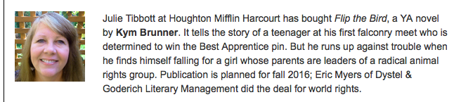 Wahoo!! After many years of revision and letting FLIP THE BIRD sit patiently on my computer, it's finally going to be published. I can't even explain you how excited and blown away I am by this news. Anyone who knows me (friends, family, fellow writers) can attest to how I thirsted for this particular book to be published. Yes, I want all of my books to eventually be acquired by a big NY publisher of course, but this book took A TON of research and made me fall in love with the sport of falconry, so it sort of wound its way around my heart.