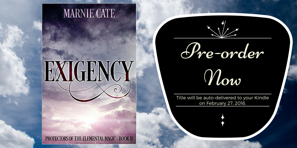 Author: Marnie CateTitle:  ExigencySeries: The Protectors of the Elemental Magic SeriesGenre: Young Adult Fantasy/Romance