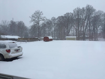 This is what it's doing outside, and Charley just headed to the mailbox. Does he have on his shoes? I don't know.