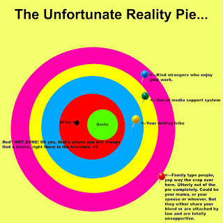 If you are outside the writing world, I’m sure you have your own recipe for these. Sadly, the same situations crop up like the ones writers face when it comes to support. Don't miss an ingredient here though or your pie is going to suck. There are parts of the Unfortunate Reality flavor that make it taste way better than it looks. AKA, the friends that become family substitutions. They are like swapping to Gluten Free flour without the sandy aftertaste. Having a writer family doesn’t always equal blood. When it comes to support, it can mean the family you choose to surround yourself with. Those brave souls willing to take on an Unfortunate pie spot can build very strong writer tribes. Pie pan half full, folks. JSee, all writers start with a secret. That tiny dream of holding a finished product of the novel of their heart in their hands. Beginning writers are sooooo scared to reach out for that delicious slice. It’s so fragile! It needs to cool or set up or whatever. One wrong move and the dream might somehow go POOF! Or the dog will snarf it down when we get up to make more coffee. Or more realistically, that vocalizing the dream might mean someone that writer loves, and wants more than anything to make proud, will instead take a giant crap on said dream. Really scary stuff. Non-support in the lives of writers is at epidemic proportions. A silent and deadly rot. Worse, it brings with it the added bonus of embarrassment outside whispers within our most trusted circles of other writers. In many ways, a double edged sword.In an effort to bring light to this serious issue that writer’s face, I present these charts and ask only one question: .