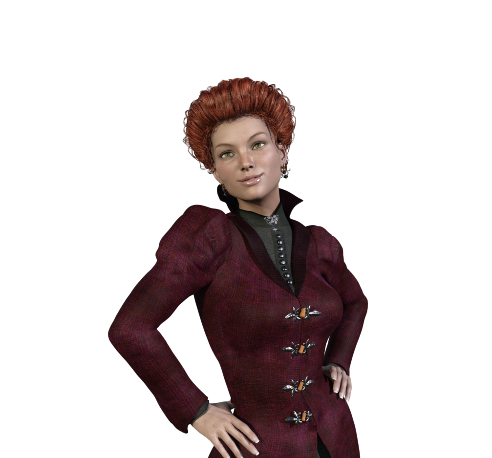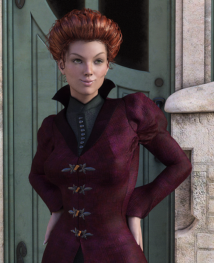 More of the coat in this image. Yes, I know her brooch vanished. Mainly because this is an earlier render, and I realized it was gone and replaced it in the first image.