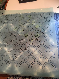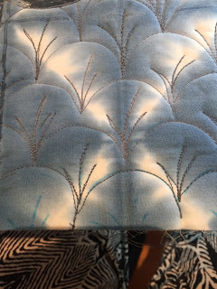 I was a bit stumped for a background quilting design until I found some quilting stencils in my studio which I've had forever and there were some Japanese design ones. I knew they would come in handy one day.