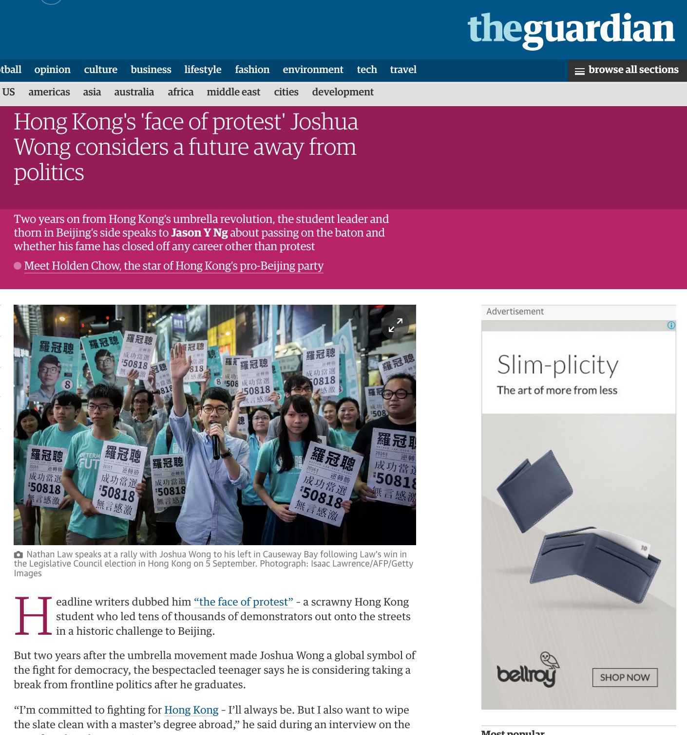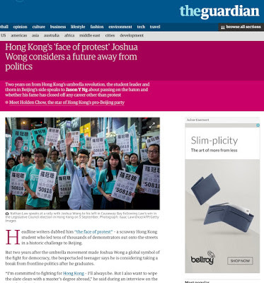 But Wong won’t be a teenager for much longer. He turns 20 in a few weeks and will lose his status as a student leader when he graduates from university in 2018. And if he doesn’t manage his career carefully, the comparison may shift from Malala Yousafzai to Macaulay Culkin or other failed child stars.