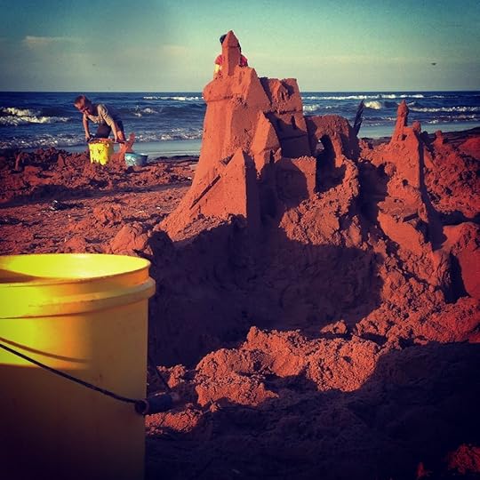 Steve and I wandered onto the beach. Summerside artist Maurice Bernard was there, knee deep in sand. He was teaching campers how to build sandcastles. I caught myself thinking about real castles and the people who lived in them. Pretty sure I had a past life living in a castle, lol (Seriously! Didn't you?). A young blonde mom was there with her son. She was watching him as he intently studied Maurice's demonstration. The kid had blonde surfer locks. My new book was born.