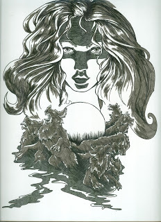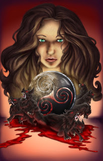 Joey: ~Clears throat~ We’re nearing the end of the coloring process. Finishing touches are added, the center pendant is given a fancy look, and a rim light is added to the wolf-things.