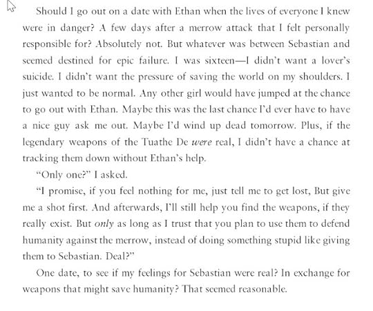 But last night, when hunters broke through the ceiling like bolts of lightning, it was my death they were after. So I couldn’t let them kill Matt. I couldn’t let him die for me. I was supposed to use the shotgun and sword Sitri gave me, but I couldn’t do it. Not when I saw Puriel. His tall, angelic form. His amber eyes and nearly white hair. The shimmering mirrored wings behind him. I couldn’t destroy something that beautiful. And I didn’t want any more deaths. I just wanted it to stop. So I offered myself to him. Let them take what they came for. In that moment, I was prepared to die.