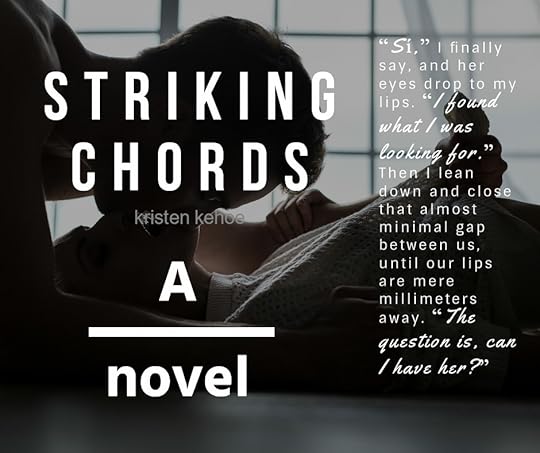 The Cover Reveal for STRIKING CHORDS is coming!!!! 11.02.16 for a release date of 12.02.16!He’s the best at his game…until he gets played.Felipe Rojas is no stranger to winning. The number one player on his college soccer team, Felipe holds all the records for scoring, on the field and off. Until the girl he falls for turns out to be taken, and he realizes he’s nothing more than a nightly stand-in.As his personal life crashes, so does his game, and Felipe finds himself straining for get back...
