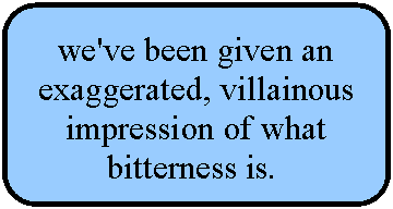 As far as the traditional use of bitterness in literature, it has a long history of belonging to mean, manipulative female characters. The sexist overtones of this are pretty obvious. After all, making it a moral imperative that women accept and forgive wrongs done to them has a pretty long history of benefiting men, right? No man wants to be glared at and made to feel guilty after he just got home from spending the day with his mistress, after all!