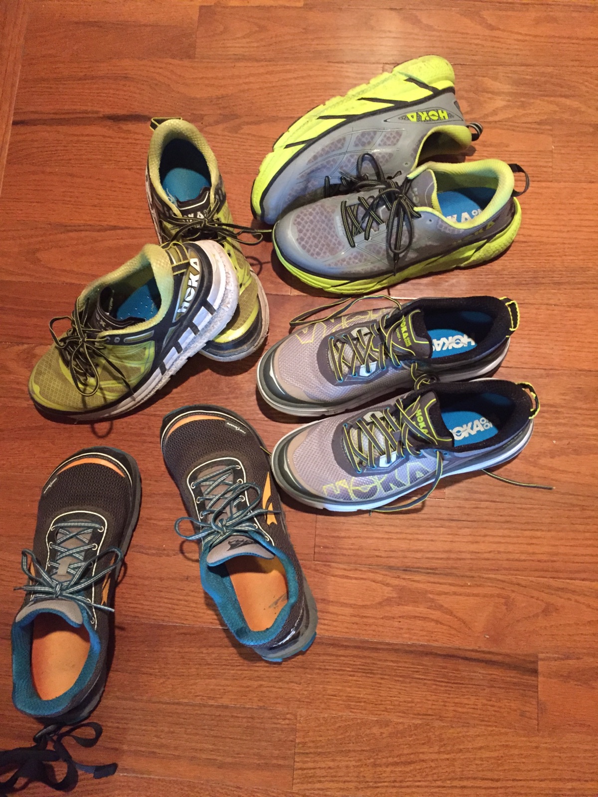 3 Pairs of Hokas and my Altra Lone Peaks