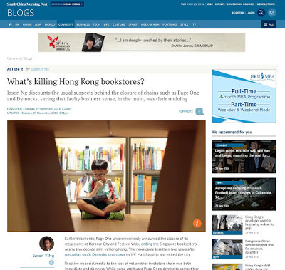 So had Page One. Its Harbour City flagship resembled a small department store, complete with a restaurant and tea house. What’s more, the chain knew what it was in for when it opened shop in aliterate Hong Kong. It didn’t go out of business because its customers suddenly changed the way they read – because they didn’t.