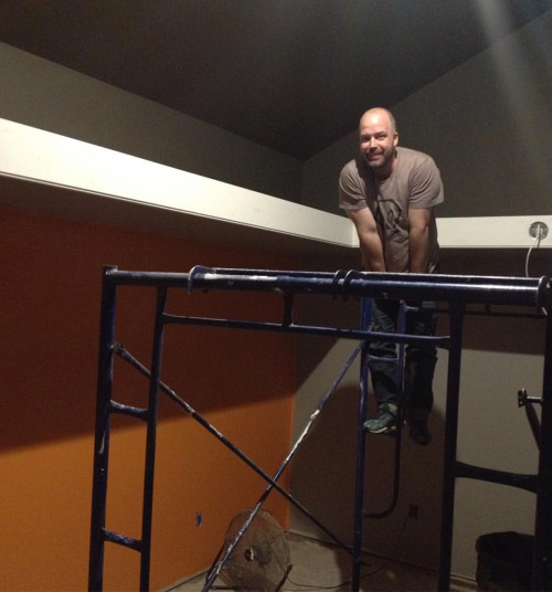 Lisa took a pic of me “hanging” out in my studio. Almost done painting. #studio #artstudio