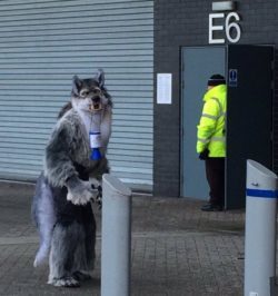 To be fair, nothing went massively wrong. But I was very late setting off and with it being the biggest event I’ve done so far as a trader, I had no idea what to expect for sales and thought it’d be better to take way too many books than not enough, so I was weighed down with 14 copies each of Hybrid and Hunted – literally as much as I could carry. And since I would be spending the con in ‘wolf form’ as part of a charity fundraiser we’d decided to do for World Cancer Day, it meant I had a hell of a lot of luggage to manage on public transport. I was already feeling the strain as I headed for the nearest bus stop, but being the stereotypical tight Yorkshireman, there was no way I was forking out for a taxi. So I struggled on.