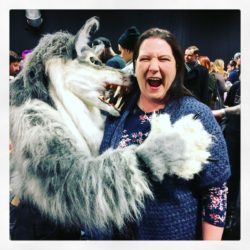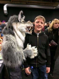 I also met plenty of awesome people and had a great time chatting to other werewolf and horror fans, whilst partially transformed back to human, as well as enjoying hanging out with my fellow werewolves on our stall. It was a really fun day, despite melting in the fur when the room temperature turned from nicely mild to scorching hot! There was one moment where I felt like I was in danger of passing out from overheating, lack of food and lack of sleep, but I’m lucky to have had a pack taking care of me. I don’t think I realised how badly I needed food and an energy drink till I was handed some snacks to keep me going.