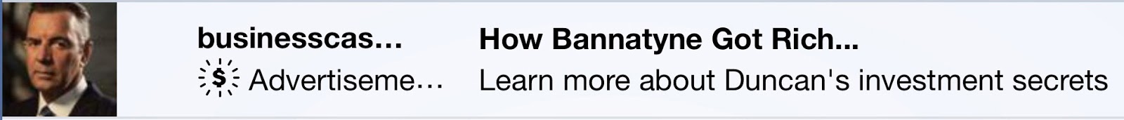 The business name for the ad has been squeezed on the page, but it was businesscasestudies. The title for the ad is How Bannatyne Got Rich and the tag line is Learn more about Duncan's investment secrets.