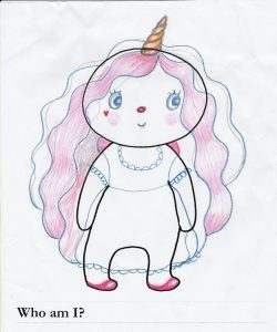 One day I was sitting with a few children and started doodling on one of the pages and came up with this little character: