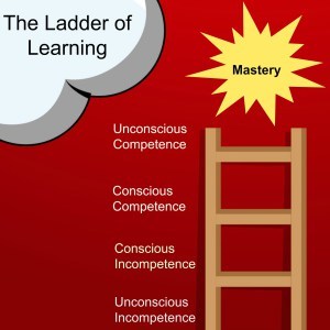 As we practice, we develop competence. At first, we have to think about how to do something. We count by threes five times to multiply 3 x 5. Later, we just know how to do it. 3 x 5=15. That jump from consciously thinking about it to just being able to do it is mastery, and the only way to get there is by climbing the ladder of learning through conscious incompetence and conscious competence.
