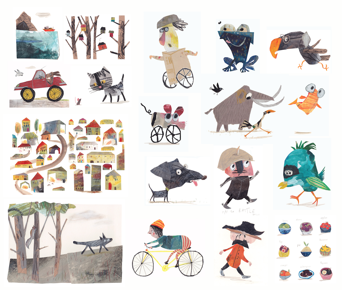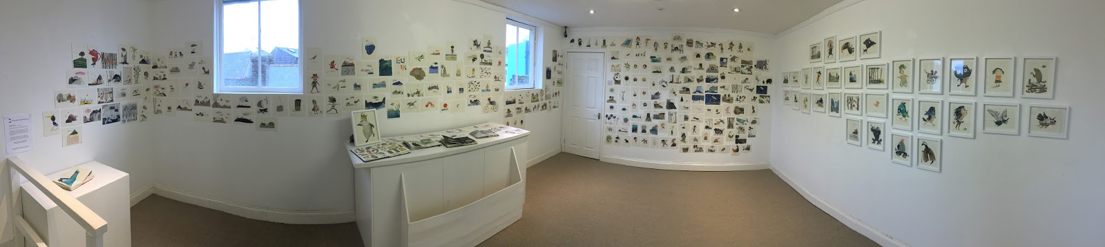 The most recent event was an exhibition at the Cornwall Contemporary Gallery in PZ in Cornwall, here in the UK. I completed a collage for a whole year, 366 days of the leap year of 2016. They started out in a skethbook and then as time went on, the sketchbook was impossoble to work in so I chose single pieces of card to work on, all the same size mostly. I hated it and loved it and thought it futile on occasion, but I was deteremined to carry it through. I had a goal and that goal was to create a style of working that I could make my own children's books in, while having some fun and feeling fulfilled in their content. I have created a bundle of friends that I am happy have on my website. Now to make some stories with them all : ) watch this space. Mammoth, Birdy and Crane are first!