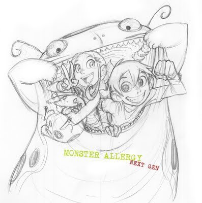 ***ET OUI, Monster Allergy NEXT GEN est désormais dans les librairies de France! La SUITE de la série : les épisodes 21, 22 et 23 ensemble dans le même album. Cooool :) Et comme la série continue, ici les dessins pour la couv du NEXT GEN #2: le mini rough pour chercher la bonne composition, puis le rough plus poussé à presenter à l'editeur. Sera t'elle approuvé? On verrà bientôt...Monster Allergy as été conçu par Centomo, Artibani, Barbucci et Canepa, les épisodes 1>20 ont été publiées par Soleil, Next Gen est publié par Lombard.*******MONSTER ALLERGY rivive :) nuovo passaggio alla tele su Rai 2, nuova uscita in Francia sotto il nome "Next Gen" e imminente ripubblicazione in Italia! Questo é il bozzetto (prima piccolo piccolo solo per cercare la composizione, poi più definito per presentarlo all'editore) per una delle prossime copertine.******Monster Allergy, mi serie con Canepa Centomo y Artibani ha sido estrenada desde poco en España (Planeta Jr) y vive nueva vida a Francia, donde sigue su publicacion (ya estamos el episodio 23!) y Italia, donde pronto serà emprimido otra vez desde en primero episodio. Miestras tanto, la série de animacion sigue dando vueltas en las pantallas (en las pantallitas aqui a la izquierda unos ejemplos). Estoy feliz ^^