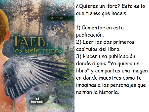 Solo podrán participar las personas que sean seguidoras de la página en Facebook y que sean residentes en Colombia o tengan una dirección dentro del país a donde pueda enviar el premio.El premio será un ejemplar de "Taeb y los siete reinos" firmado.Para concursar los participantes primero deberán comentar en la publicación donde se encuentran las bases del concurso, y luego tendrán que leer los dos primeros capítulos del libro (que se pueden descargar aquí) y hacer una publicación en el muro de la página en la que digan: "Yo quiero un libro" y compartir una imagen en la que muestren como se imaginan a los dos personajes que narran la historia.La imagen debe ser de la autoría de los participantes, aquellos que usen una imagen que no sea una creación propia serán desclasificados.Solo se admitirá una imagen por participante.Los criterios para escoger la imagen ganadora serán: la originalidad y la fidelidad a la descripción de cada personaje.El concurso solo se realizará si hay dos o más participantes.El plazo máximo para compartir la imagen es hasta el 20 de noviembre de 2012 a la medianoche y el ganador será anunciado el 23 de noviembre de 2012.