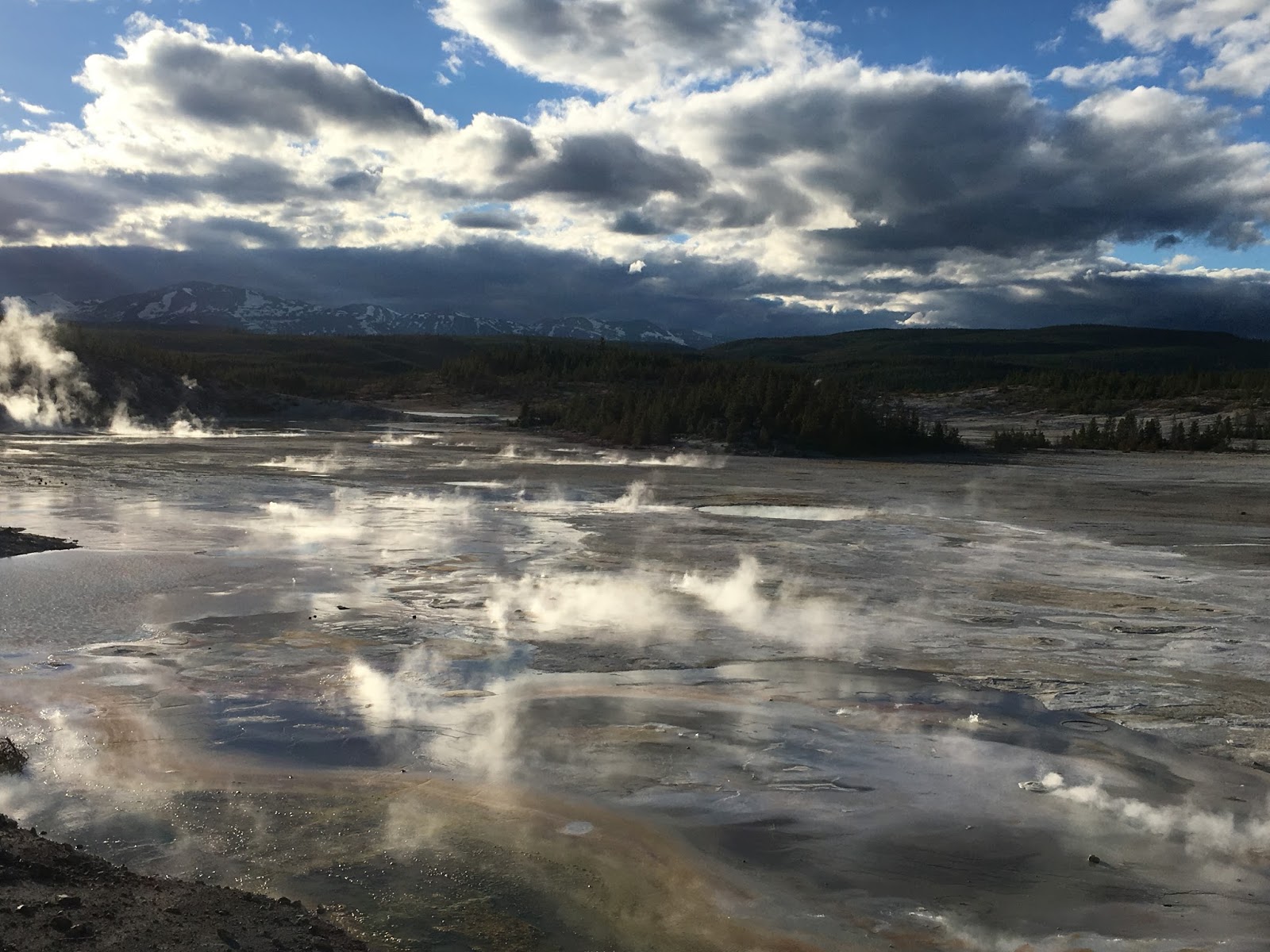 In seven days, I’ve seen six states: Louisiana, Texas, Utah, Idaho, Wyoming, and Montana. (Yes, there was some air travel involved, right between Texas and Utah. Have I mentioned how much I hate DFW Airport? No? Well, that’s another blog post.)I’ve covered a lot of miles. I’ve taken a buttload of pictures, and I’ve gotten some terrific writing inspiration. Like, the hotel where we stayed the second through fourth nights has its very own ghost story, and the mist over the thermal pools in Yellowstone in the evening has given me some ghostly inspiration.