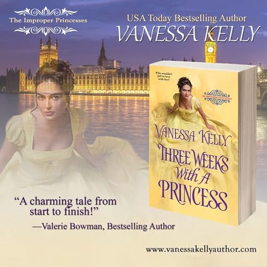 THREE WEEKS WITH A PRINCESS releases into the wild world tomorrow–huzzah! To celebrate, I’ll be holding a facebook party tomorrow evening from 7 – 9 pm, EST. There will be chats with guest authors like Christi Caldwell and Shana Galen, and lots of giveaways–like this one!