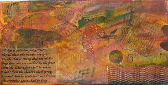 Mixed Media Collage by Sherry Siska: Acrylics, found items, poem by J.R.R Tolkien