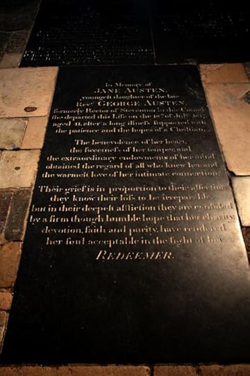 the famous engraving of the author. The picture below is of her gravestone in Winchester Cathedral ( © Jon Southcoasting ).