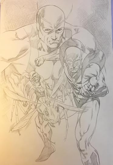 I had this commission request a very long time ago to do a montage piece of these 3 Hank Pym characters together. So here's the pencils. I'll post up the inks very soon!