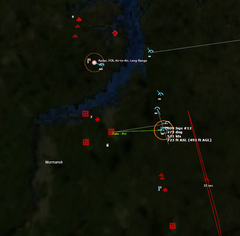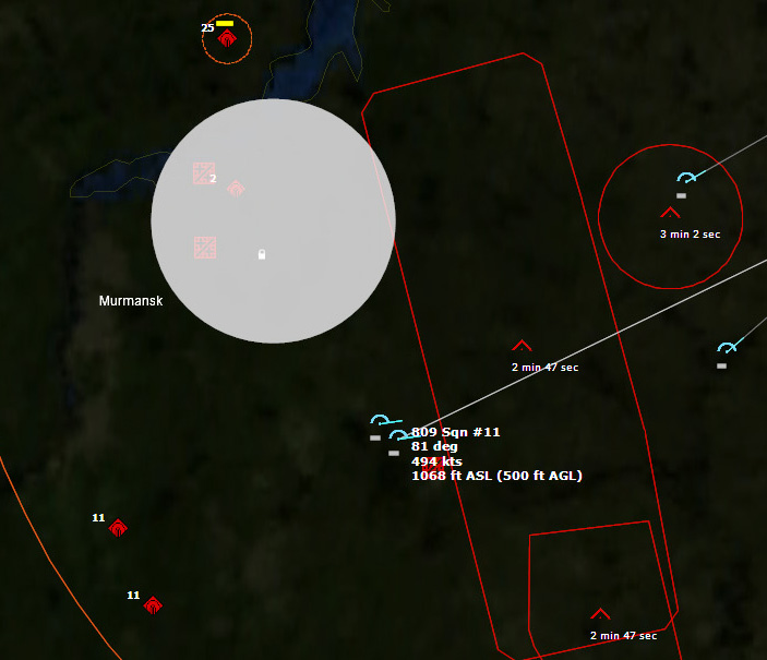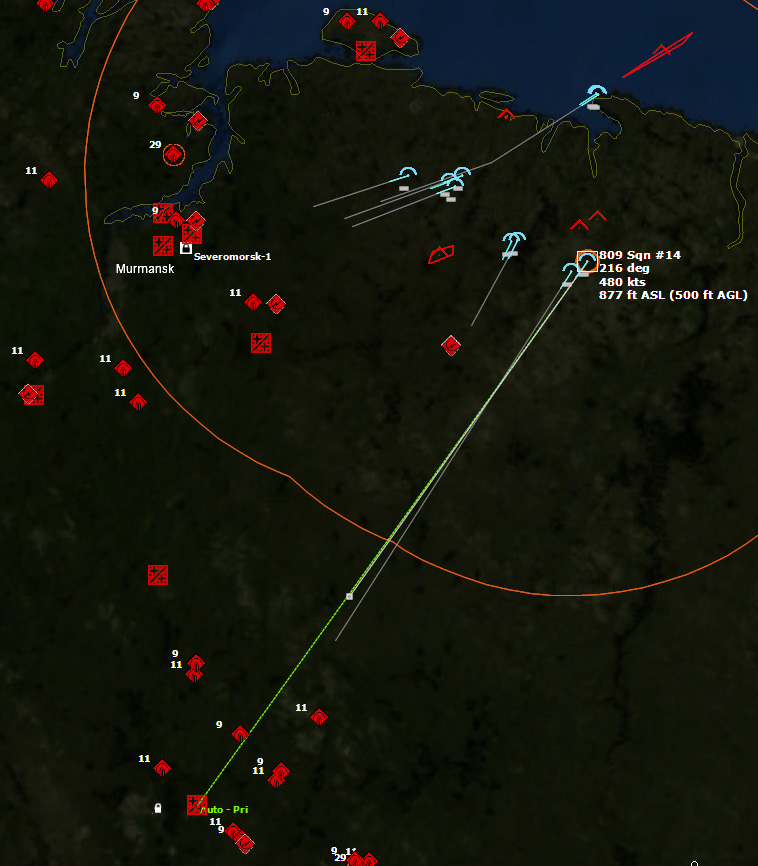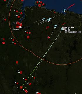 The Phantoms go RTB.My strikes still have approximately 80 miles to go to skirt the SAM batteries along the coast, and then the final dash inland, 60 miles to Severomorsk-1, and 95 miles to Olenegorsk.