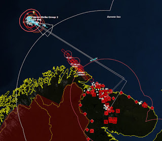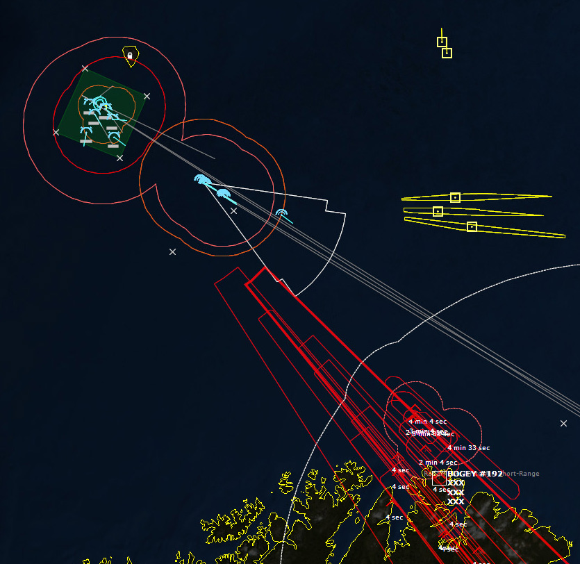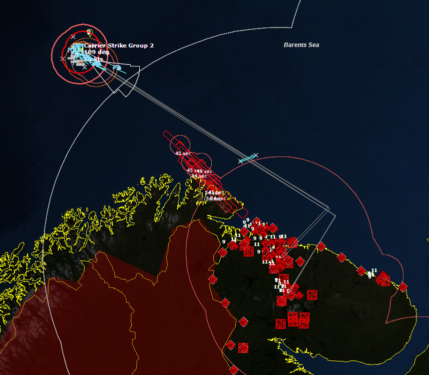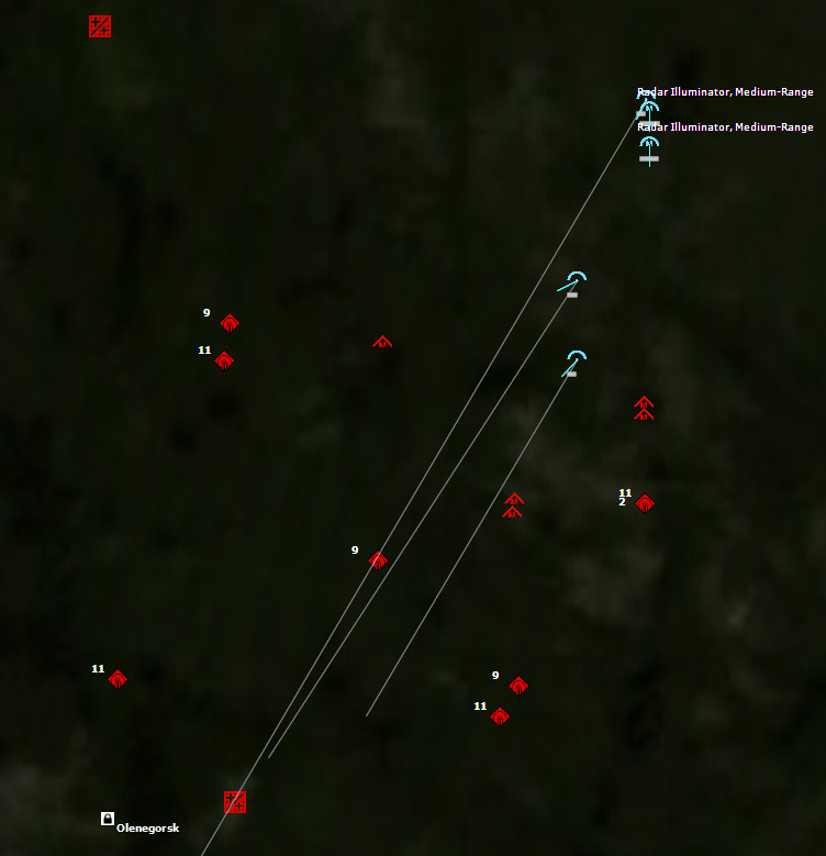 SAMs launch everywhere063449Z As the Severomorsk-1 strike closes to under 10nm from its target, SAMs start launching everywhere.  The Martels have hit the nuclear SAM site, silencing it temporarily, but it is but one of many sites in the area. SAMs are all over the place.