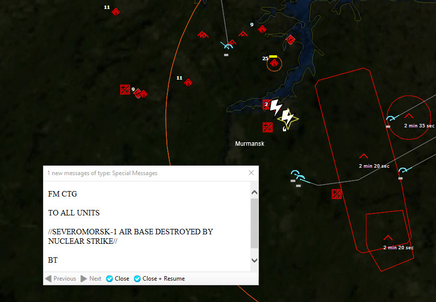 The Olenegorsk strike is heavily engaged by SAMs063647Z The WE.177 Type B 400kt Nuclear bomb detonates over Severomorsk-1.