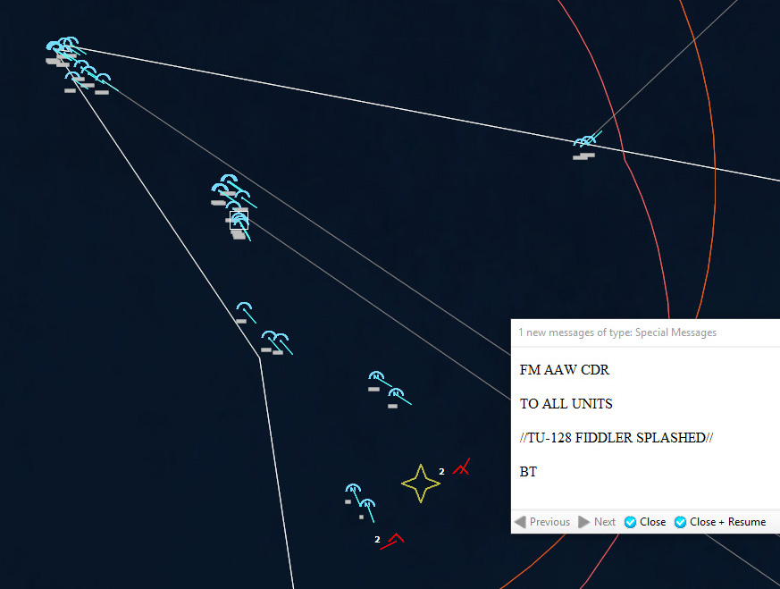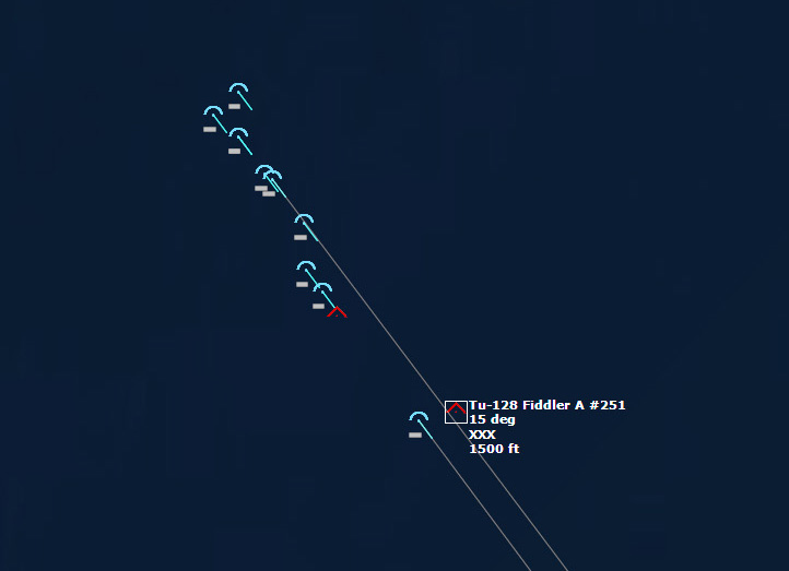 My strike package, however, despite flying at 300 feet ASL, is apparently still detected, as some Tu-128 Fiddlers attempt an intercept.