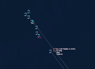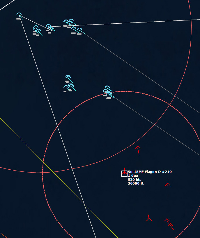 The interceptors leave?I order my Fighters to break off and return to their packages.  Just before the contacts are lost, they are identified as Yak-28P Firebars. The more distant contacts, some of them anyway, are Su-15 Flagons, identified by their radar emissions.