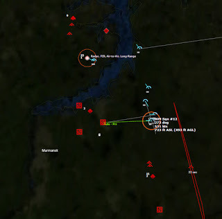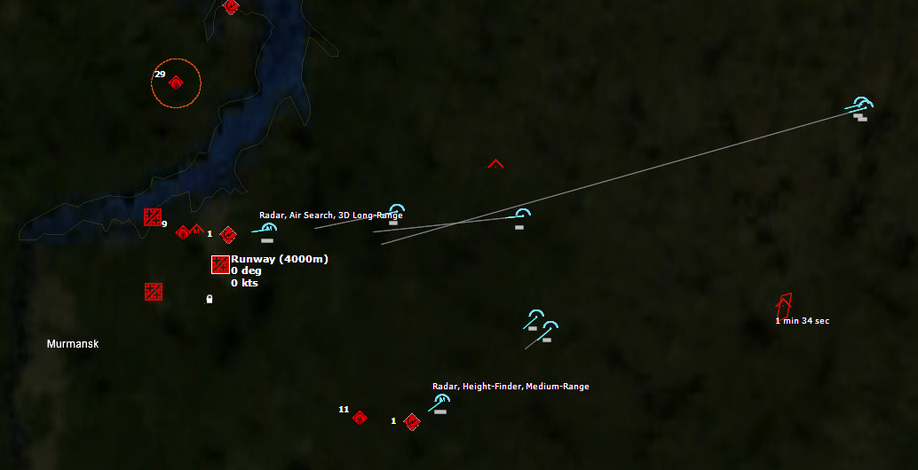 The strikes are not yet being fired upon by SAMs063141Z With the strikes 27nm and 49nm away from their targets, the first SAM launch is detected, a SA-3b Goa near Severomorsk-1. The nearest Buccaneer immediately targets the SAM battery with its remaining Martels.