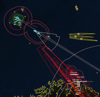 Multiple air and surface contacts are detectedThere are perhaps 16 air contacts and 5 surface contacts.