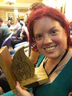 I am pleased glad deliriously ecstatic to report that Stay Crazy has won the British Fantasy Award for Best Newcomer!I did have a speech prepared, but I promptly forgot all of it once I got to the podium and I'm not even quite sure what I said once I was up there. (If it was embarrassing, please don't ever let me know.) So in case I didn't say it then, I want to thank my publishers Jason Sizemore and Lesley Conner at Apex, my writing mentor and biggest supporter Nick Mamatas, all the short fiction editors who have bought my work over the years, my spouse/in-house editor Rob, and most of all the British Fantasy Society. I could not be happier that my little small press book has been so greatly honored. From the bottom of my heart, thank you.