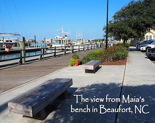 In 2015 when I attended my niece's beach wedding, I had already begun working on BEACH WEDDING, but I didn't understand the full story yet. And before it was finished, I agreed to write THE HAPPINESS IN BETWEEN and THE MEMORY OF BUTTERFLIES for Lake Union Publishing. BEACH WEDDING went onto that back burner we're all familiar with. By the time I returned to it this year, to finish the story, the story had changed. I won't give away any plot spoilers, but BEACH WEDDING, as Maia's story, may not be what you're expecting...but then, that's Maia. She is a strong-minded woman and has her own way of doing things. BEACH WEDDING crosses from Emerald Isle, to Morehead City, to Beaufort, and even travels up to Merrimon, NC, but most of the story plays out in Beaufort where Maia's heart is. Here's a picture of her bench with its view of the marina, the one she goes to for lunch or phone conversations, or even to meet friends, and Joel.